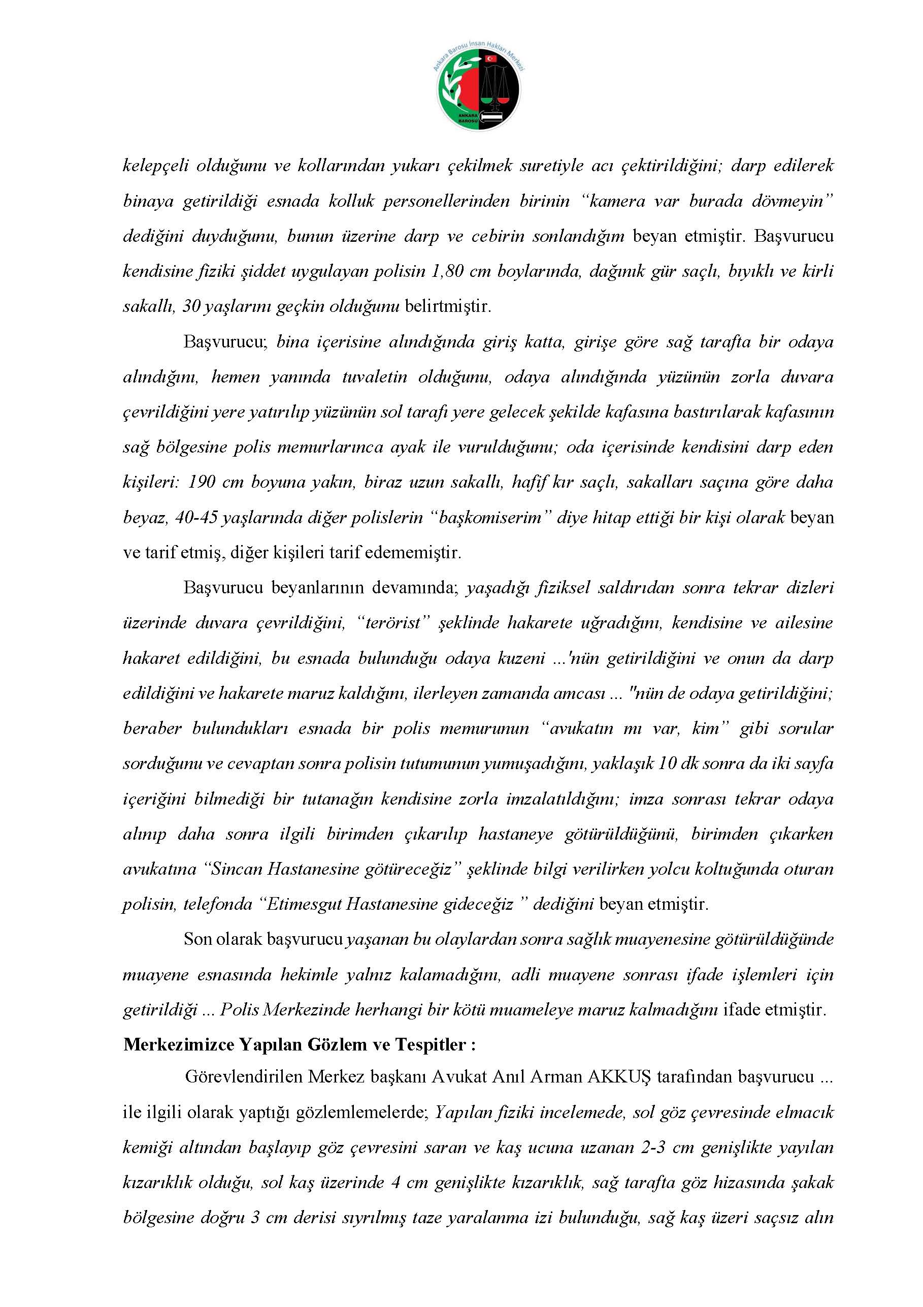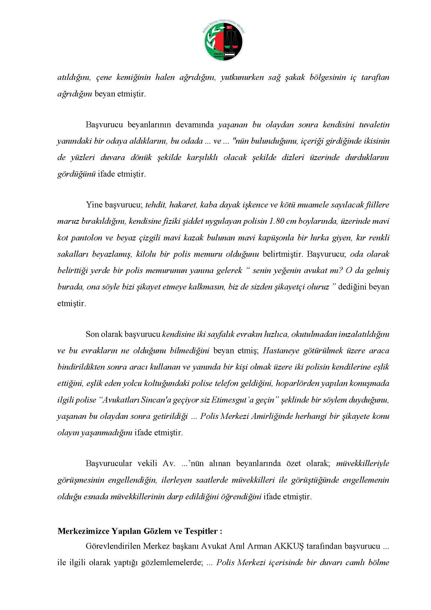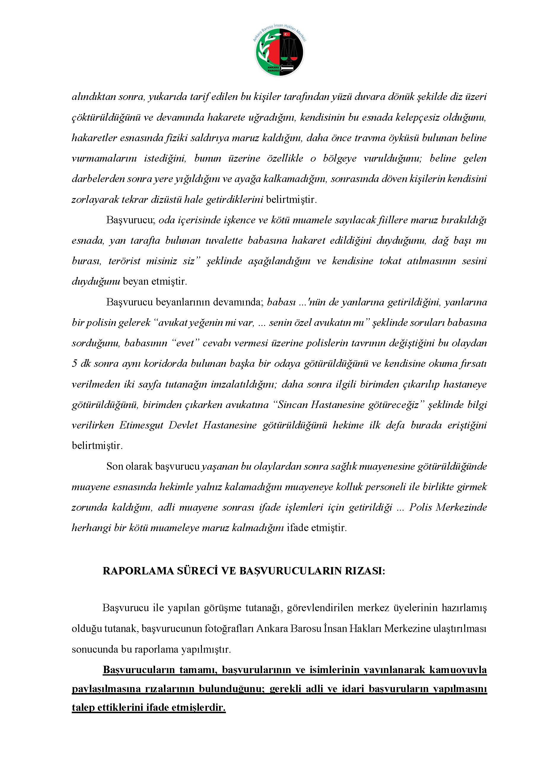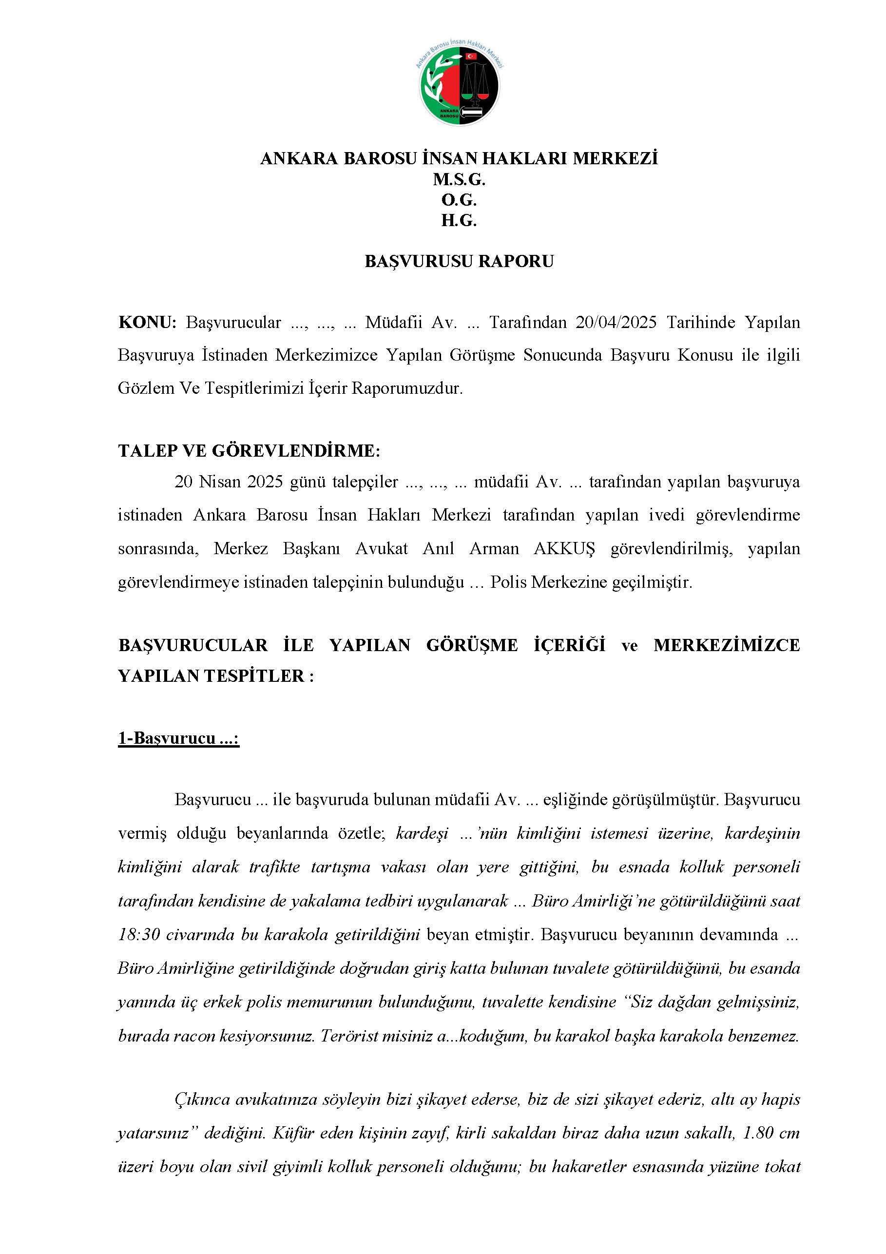 ANKARA BAROSU İNSAN HAKLARI MERKEZİ M.S.G. O.G. H.G. BAŞVURUSU RAPORU