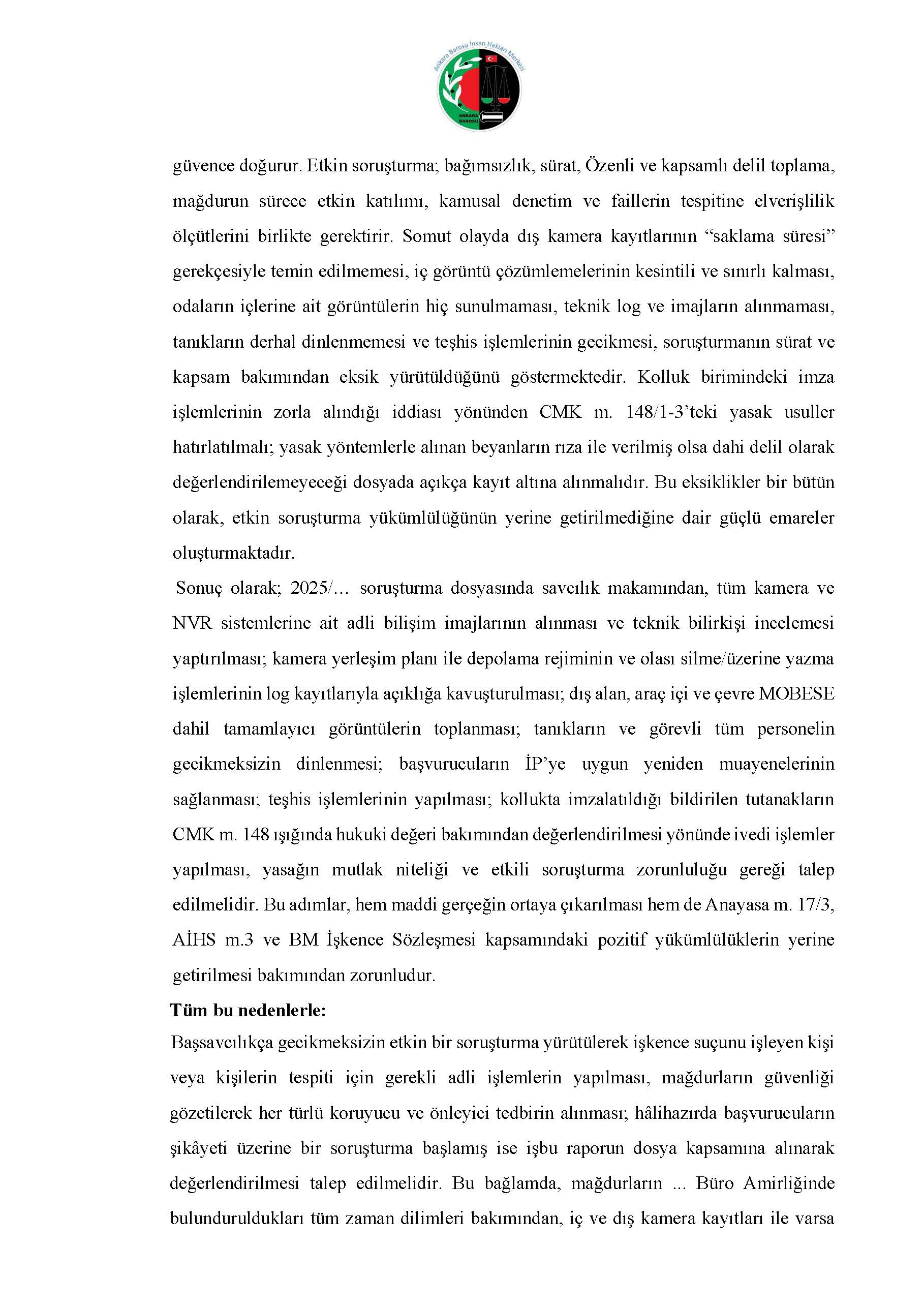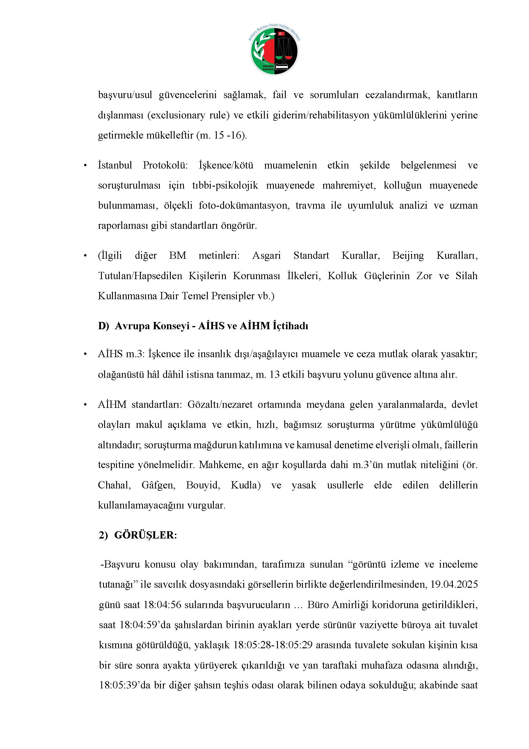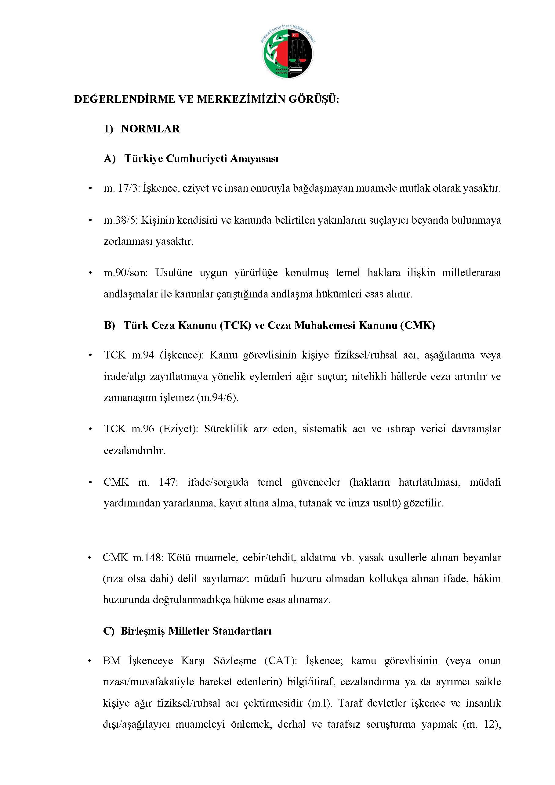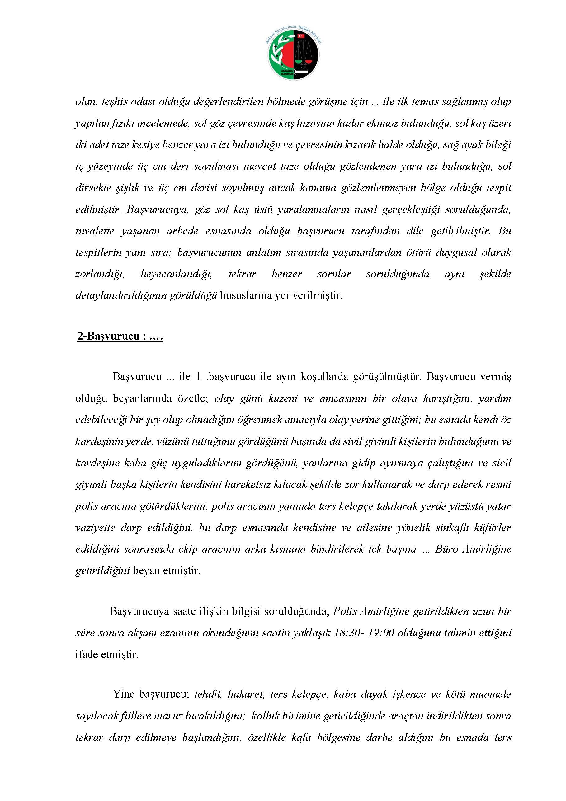 ANKARA BAROSU İNSAN HAKLARI MERKEZİ M.S.G. O.G. H.G. BAŞVURUSU RAPORU