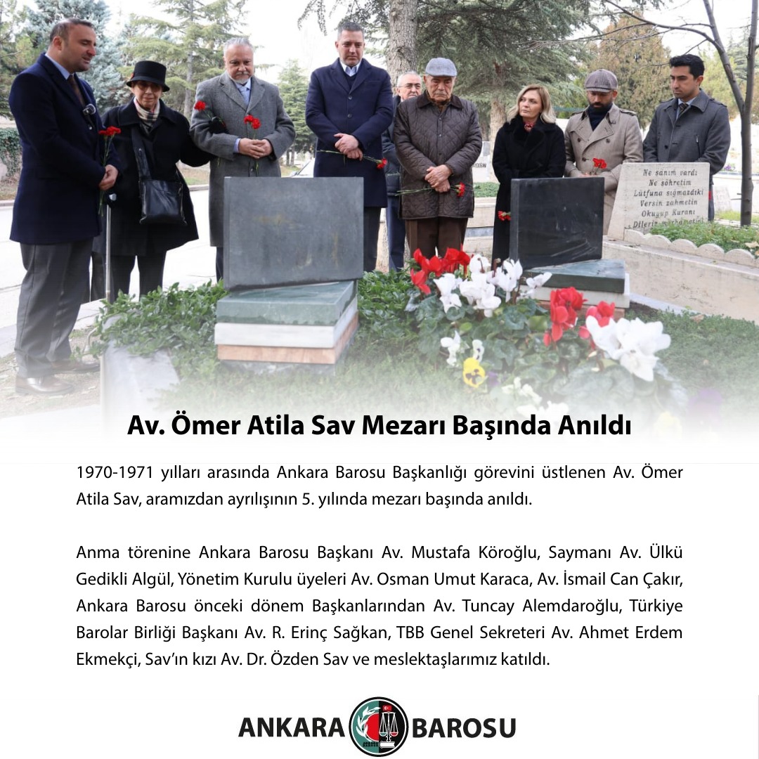 1970-1971 yılları arasında Ankara Barosu Başkanlığı görevini üstlenen Av. Ömer Atila Sav, aramızdan ayrılışının 5. yılında mezarı başında anıldı.