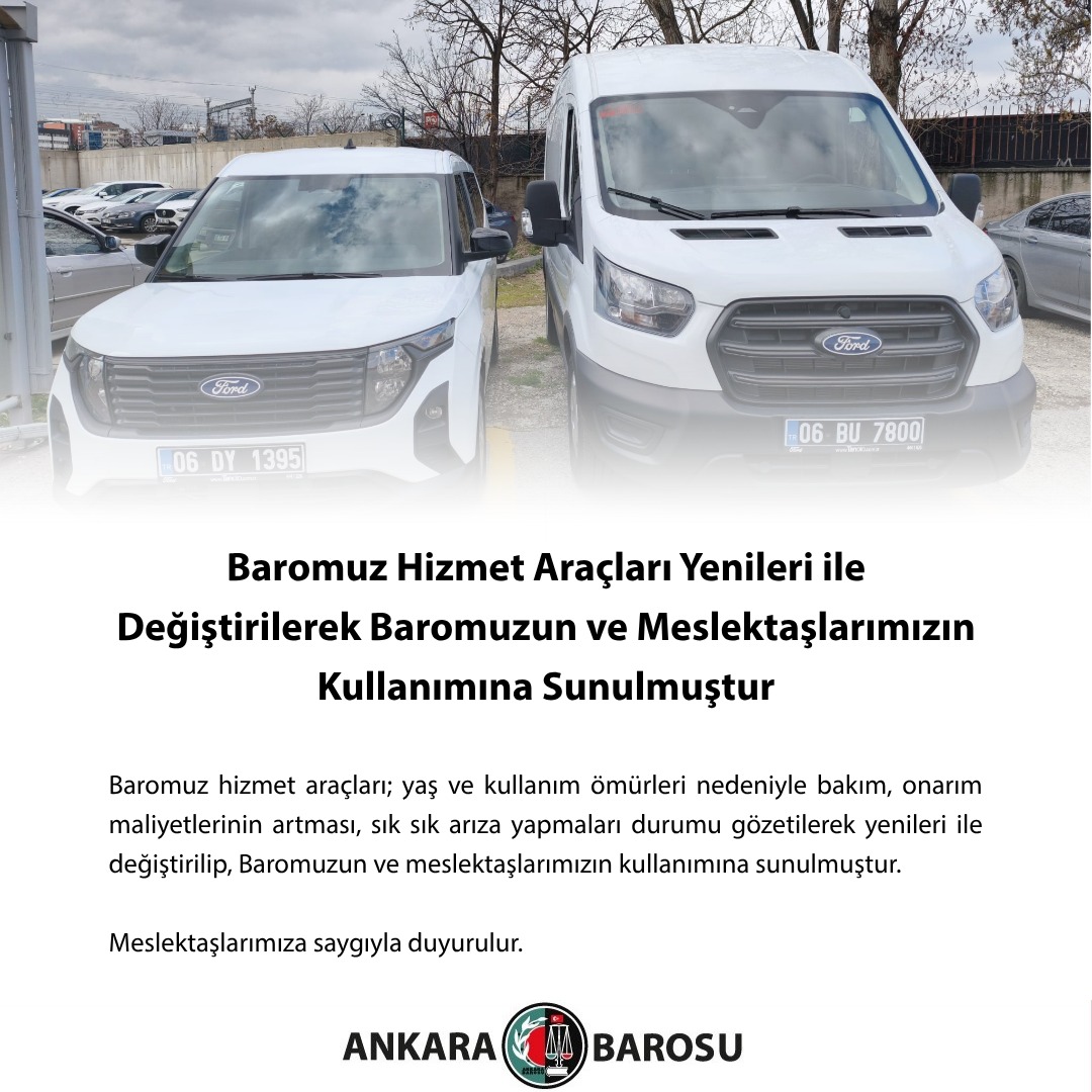 Baromuz hizmet araçları; yaş ve kullanım ömürleri nedeniyle bakım, onarım maliyetlerinin artması, sık sık arıza yapmaları durumu gözetilerek yenileri ile değiştirilip, Baromuzun ve meslektaşlarımızın kullanımına sunulmuştur.