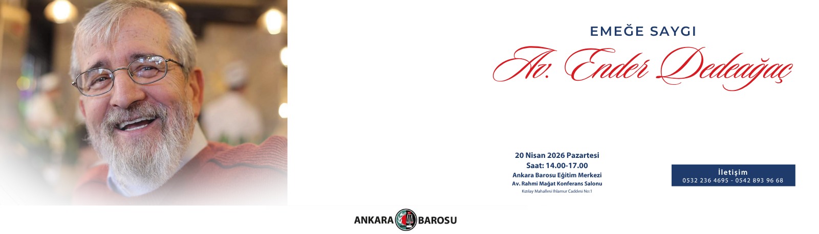 18.01.1979 tarihinde avukatlık mesleğine başlayan Baromuz üyesi Av. Mehmet Emin DAYIOĞLU (6618) vefat etmiştir. Cenazesi, 02.04.2026 Perşembe günü (bugün) saat 16.45’te Karşıyaka Mezarlığı Camii’nde kılınacak namazın ardından Karşıyaka Mezarlığı’na defnedilecektir. Meslektaşımıza Allah'tan rahmet, ailesine ve Baromuz üyelerine başsağlığı dileriz.